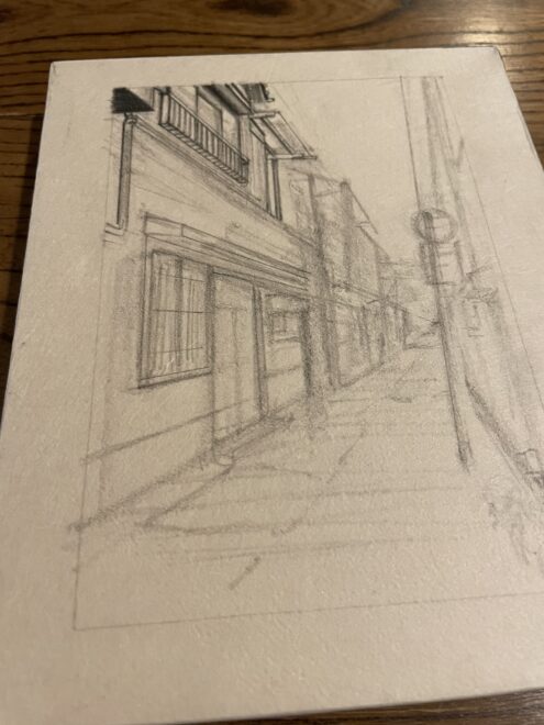 今、町を描いています。