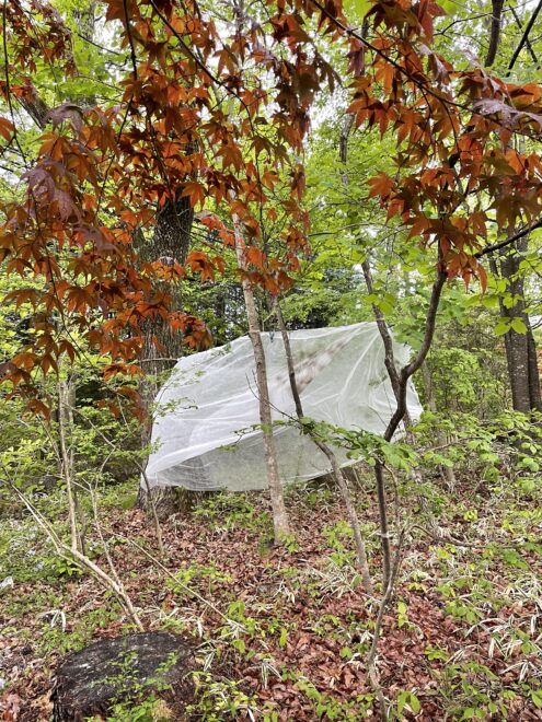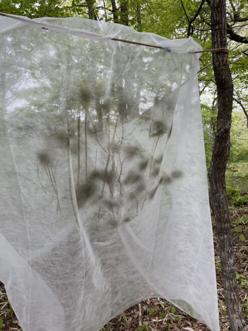 先日から、庭の一角を不織布で囲って、その中で描いています。