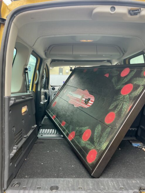 特注の仮額縁が完成したので、松本まで取りに行きました。