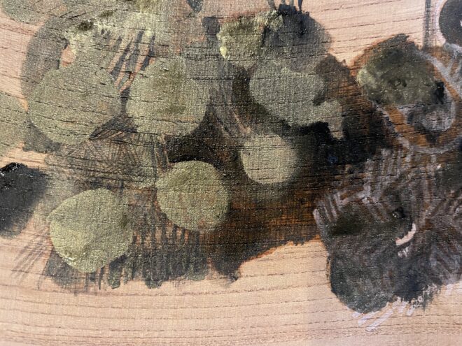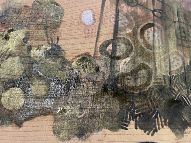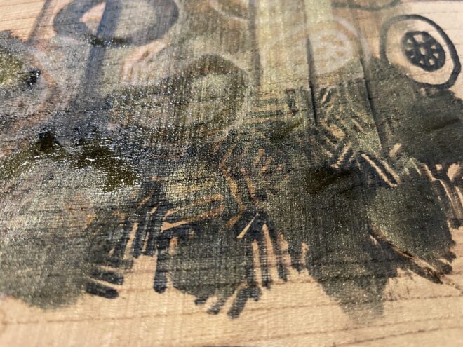 そんな中、今日はいつもの鉛筆画ではなく、並行して廃材にアクリル絵の具で描く作品の計画を立てました。