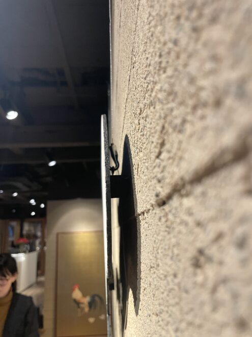 実際の作品(土台まで)を持ち込み、ピクチャーワイヤーで吊るしてみました。