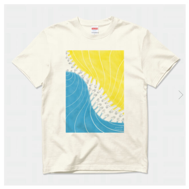 これはみんなの思いだろうと、デザインを使ってTシャツやエコバッグなどのアイテムとしてつくりました。