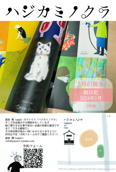 ハジカミノクラOPEN! 2024.04.17 WORK絵日記NEWS ご無沙汰しております ご無沙汰しています、環です。 家族の節目に立会い、なんとか落ち着いたかなと、 これからは自身の活動を少しずつ再開したいと思います。 ハジカミノクラOPEN! 日頃よりアトリエとして使っている蔵があるんですが、 そこでささやかな展示をします。 そして、続けます 同時に、制作も公開しようかなと思っています。 試行錯誤しながらOPENしますので、 よろしくお願いします! コメントは受け付けていません。