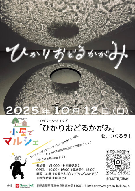 「小屋でマルシェ」でワークショップします! 2025.10.10 WORKNEWS 小屋でマルシェでワークショップします! 私のブースは以下の内容です! 手ぶらでお越しくださいね。 先月京都で開催しました個展「UGATSU」の作品の一部も展示します! お待ちしてます!楽しみましょう〜 コメントは受け付けていません。