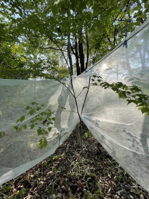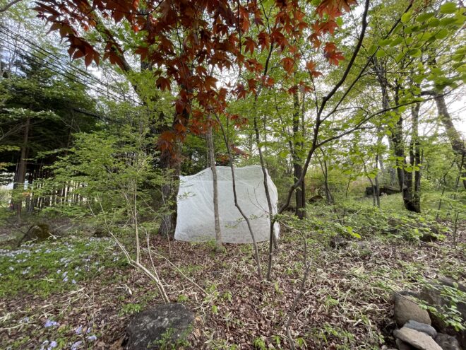 囲った不織布の中に入ってみると、視界は遮られるのですが、音が鮮明に聞こえます。