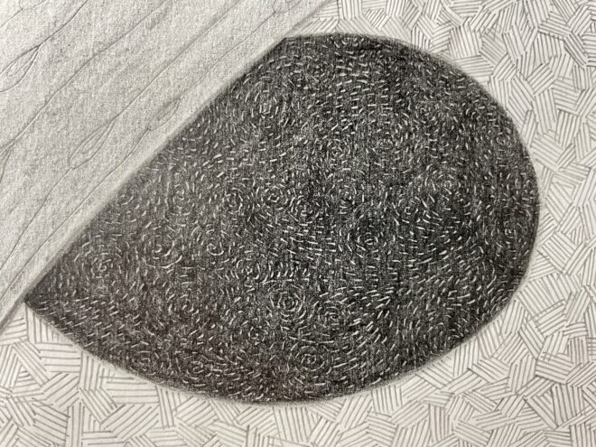 本番、厚めのケント紙を使う場合は、もっと硬い鉛筆で鋭くえぐり描いても良いと思います。