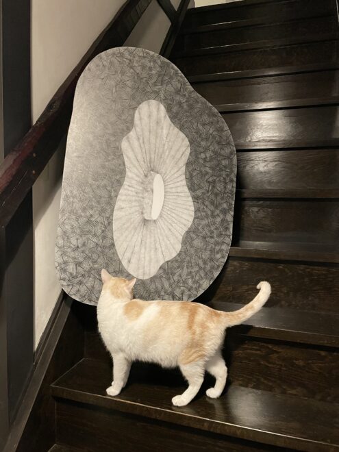 いつものように、パネルに水張した模造紙に描き、スチレンボードに貼り付け、切り出しました。
