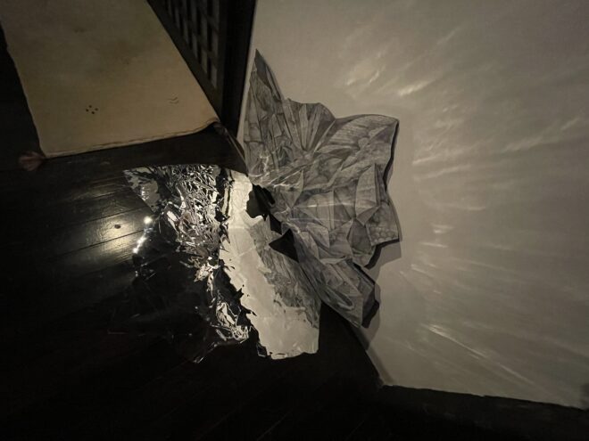 影としているミラーシートが空間の光を反射させて、